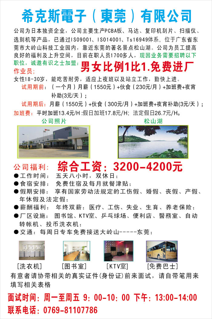 友华电子汽配公司大量招聘男女普工
