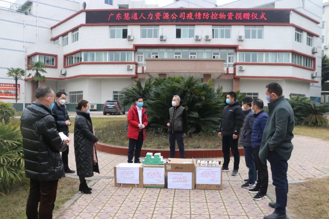 在疫情防控的关键时期,2月7日,广东慧通人力资源公司为我校捐赠一次性口罩2000个,藿香正气液1400支,电子体温枪17支,消毒药片100瓶等防疫物资。学校党委书记、校长赵全伦、党委副书记、常务副校长李正权、工会主席张杰、副校长刘江岚等学校领导代表全校师生接受了捐赠。赵校长代表全校师生,衷心感谢广东慧通人力资源公司为我校开学前期及开学后疫情防控物资准备工作雪中送碳,赵校长说,此次善举,充分彰显广东慧通人力资源公司强烈的社会责任与担当。