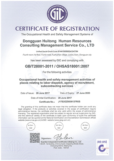 慧通职业健康证书GB/T28001-2011/OHSAS18001:2007