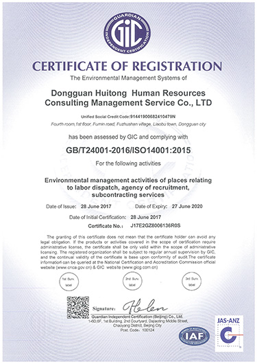 慧通环境的初审证书GB/TZ24001-2016/ISO14001:2015